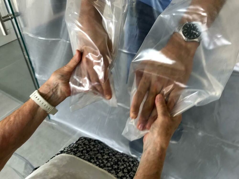„Saranno predisposte due postazioni “Emozioni dell’abbraccio” dove sarà sperimentata una nuova tecnica che, con l’utilizzo di materiale plastico trasparente morbido, consentirà a ospiti e famigliari di abbracciarsi pur restando separati e protetti da possibili contagi“…